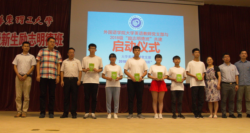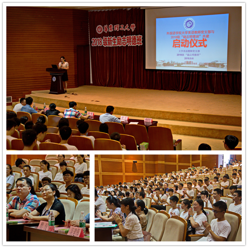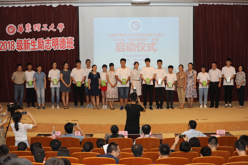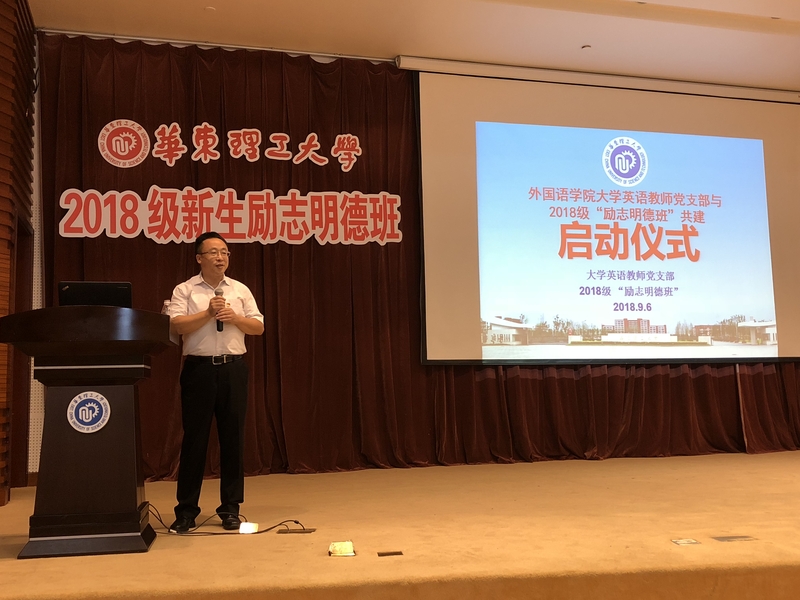 9月6日下午,开云kaiyun官网大学英语教师党支部与2018级新生“励志明德班”共建活动启动仪式在奉贤校区敬贤堂举行。学工部部长、校团委书记倪炜,学工部副部长胡兵,外语学院党总支书记王喆、副书记樊俊、副院长吴建伟、大学英语教师党支部16名教师党员、教师志愿者和147名“励志明德班”学生一起参加了启动仪式。活动由大学英语教师党支部组织委员楼燕斐主持。